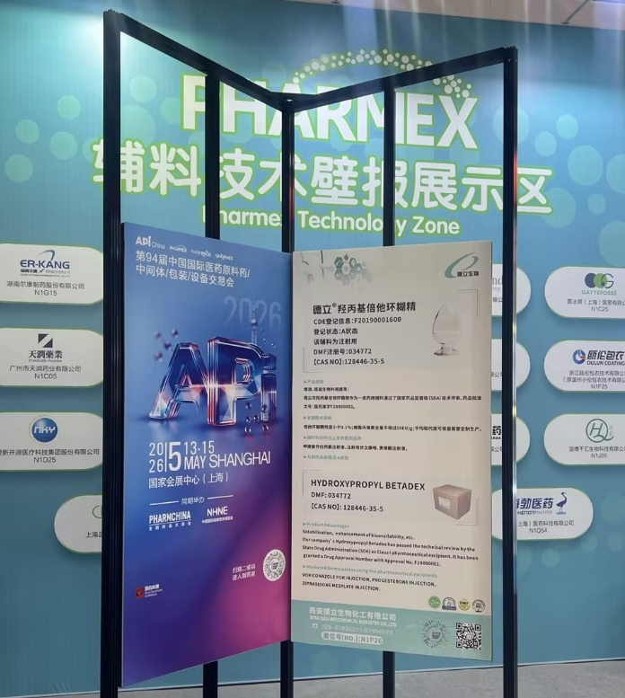Xi'an Deli Biochemical Industry Co., Ltd.-k Chongqing-en ospatu zen 2025eko API Txinako Erakusketan parte hartu zuen, konpainiaren produktu enblematikoen erakusgarri.Hidroxipropil Betadex (HPBCD)etaBetadex Sulfobutil Eter Sodioa (SBECD)—Munduko farmazia eta kimiko industriako profesionalei.