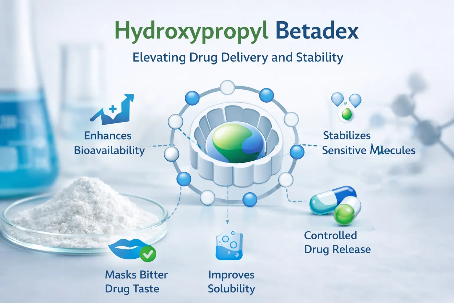 Hidroxipropil Betadexondo disolbatzen ez diren drogak oso ondo funtzionatzen duten formulazio bihurtzen dituen sendagai iraultzailea da. Aldatutako ziklodextrina deribatu honi buruz gauza handi asko daude, hala nola, sendagaien disolbagarritasun hobea, bioerabilgarritasun hobea eta egonkortasun hobea. Kapsula molekularraren teknologiak inklusio-konplexu egonkorrak egiten ditu, beste formulazio batzuekin sortzen diren arazoei aurre egiten dietenak. Mundu osoko farmazia-industriako zientzialariek polimero-eramaile malgu hau erabiltzen dute sendagaiak emateko metodoak hobetzeko, toxikotasuna murrizteko eta emaitza terapeutiko koherenteak lortzeko ahozko zein injektagarrietarako.